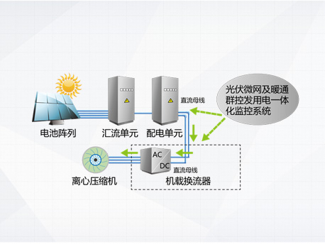 光伏發電系統不發電,主機向電網取電運行,機組相當于常規高效變頻離心機。