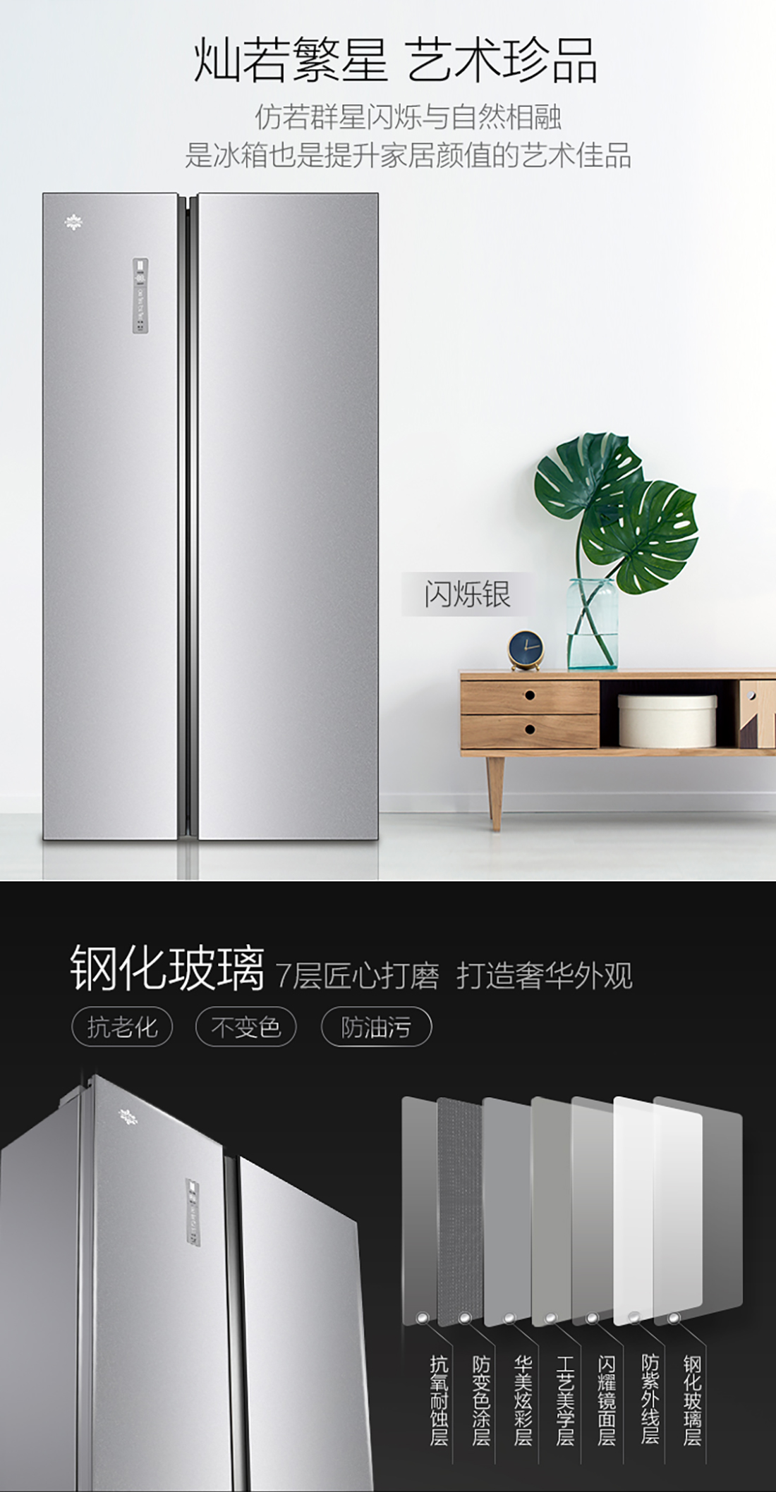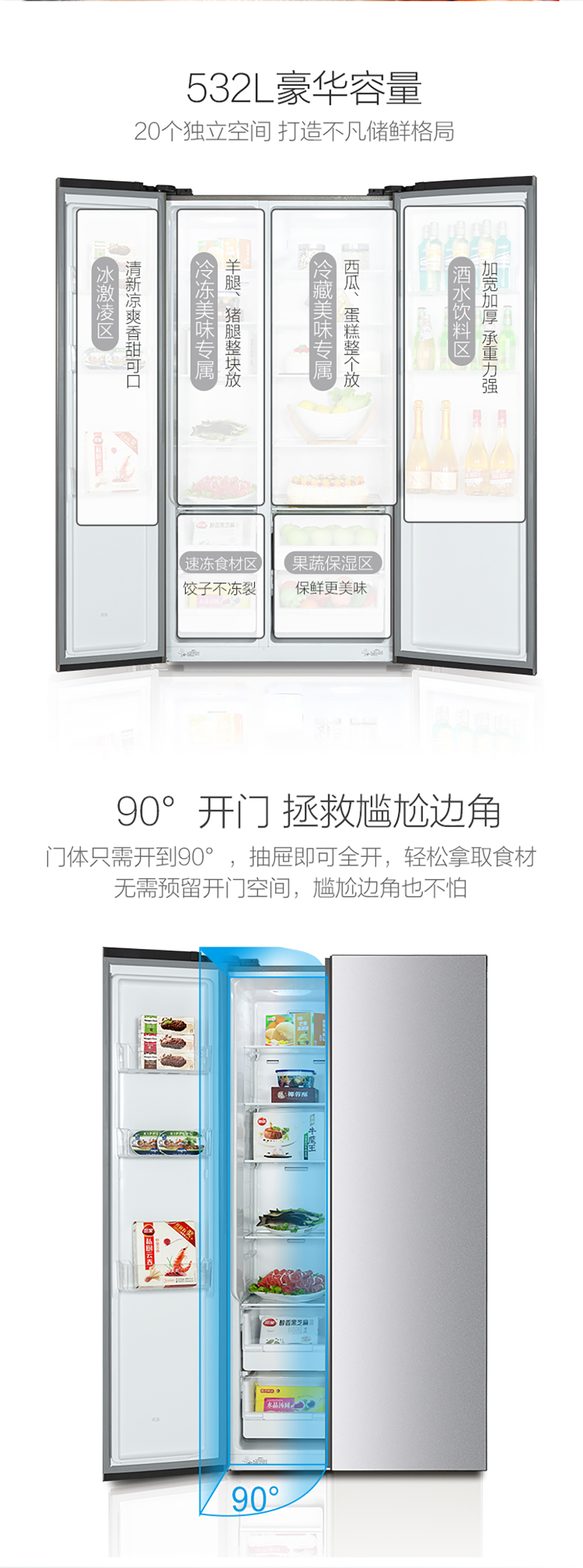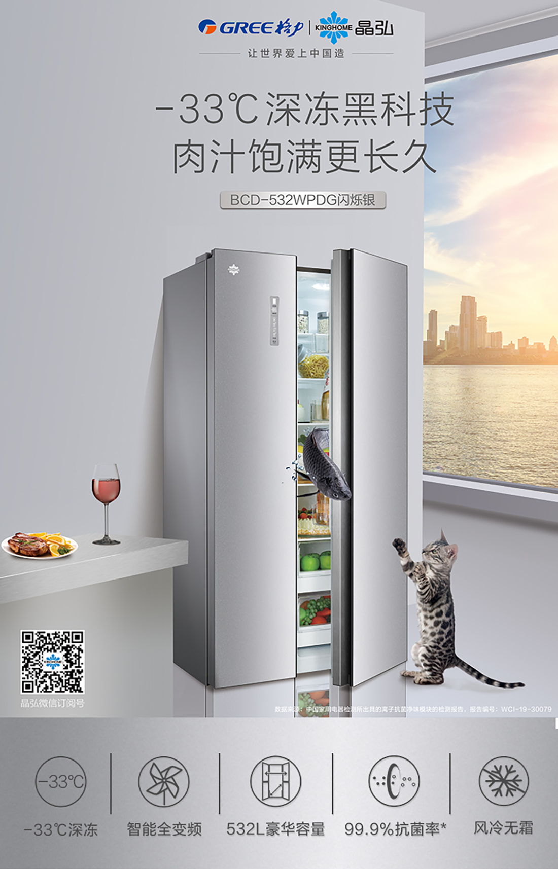 搭載-33℃深凍鎖鮮科技,肉汁飽滿更長久。采用離子長效抗菌凈味,抗菌率高達99.9%。3D沐風,風冷養(yǎng)鮮,無需鑿霜。